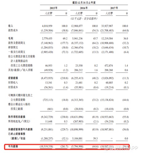 收入快速增長的同時(shí),公司的虧損正在逐漸收窄。公司2015年虧損59億元,2016年虧損54億元,2017年虧損28億元,離扭虧為盈越來越近。