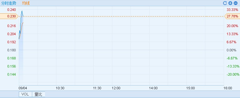 智通財(cái)經(jīng)APP獲悉,有線寬頻(01097)早盤股價(jià)繼續(xù)飆升,截至9時(shí)39分,漲23.33%,報(bào)價(jià)0.222港元,成交額3837萬(wàn)。