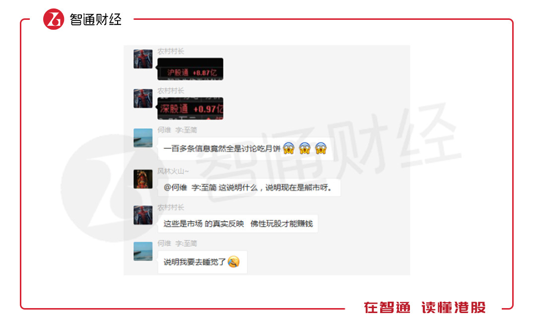 被黑天鵝痛擊一番后,市場悲觀情緒明顯占據(jù)了上風(fēng)。智通財(cái)經(jīng)APP觀察到,某500人的投資大群雖活躍度照常,但全變成了說“新財(cái)富風(fēng)月”、“品月餅”,絲毫沒有往日的“談市場、擺數(shù)據(jù)、說動向”,甚至不惜爭個臉紅耳赤的情形。