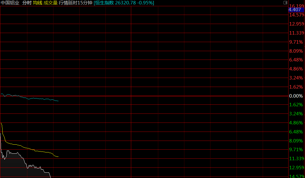 中國鋁業(yè)(02600)H股早盤急挫12%,現(xiàn)價(jià)與A股表現(xiàn)背馳,A股漲0.99%。截至9時(shí)58分,跌12.27%,報(bào)價(jià)3.36港元,成交額1.23億。