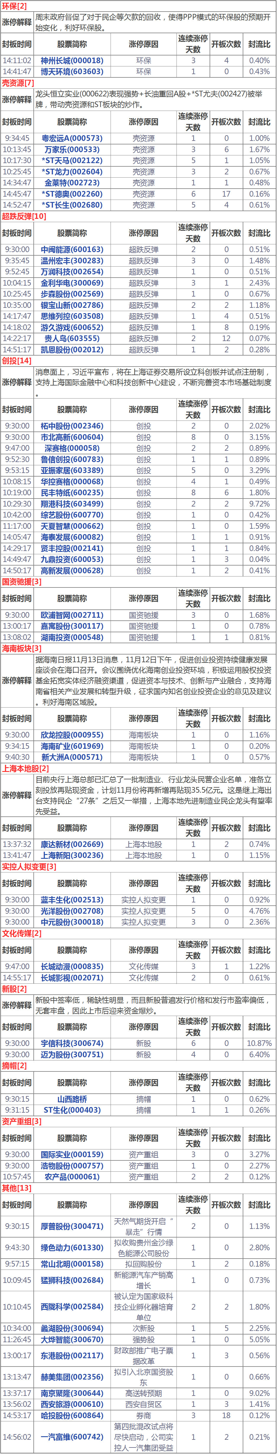 11.14漲停分析 創(chuàng)投個股分化殼資源炒作降溫