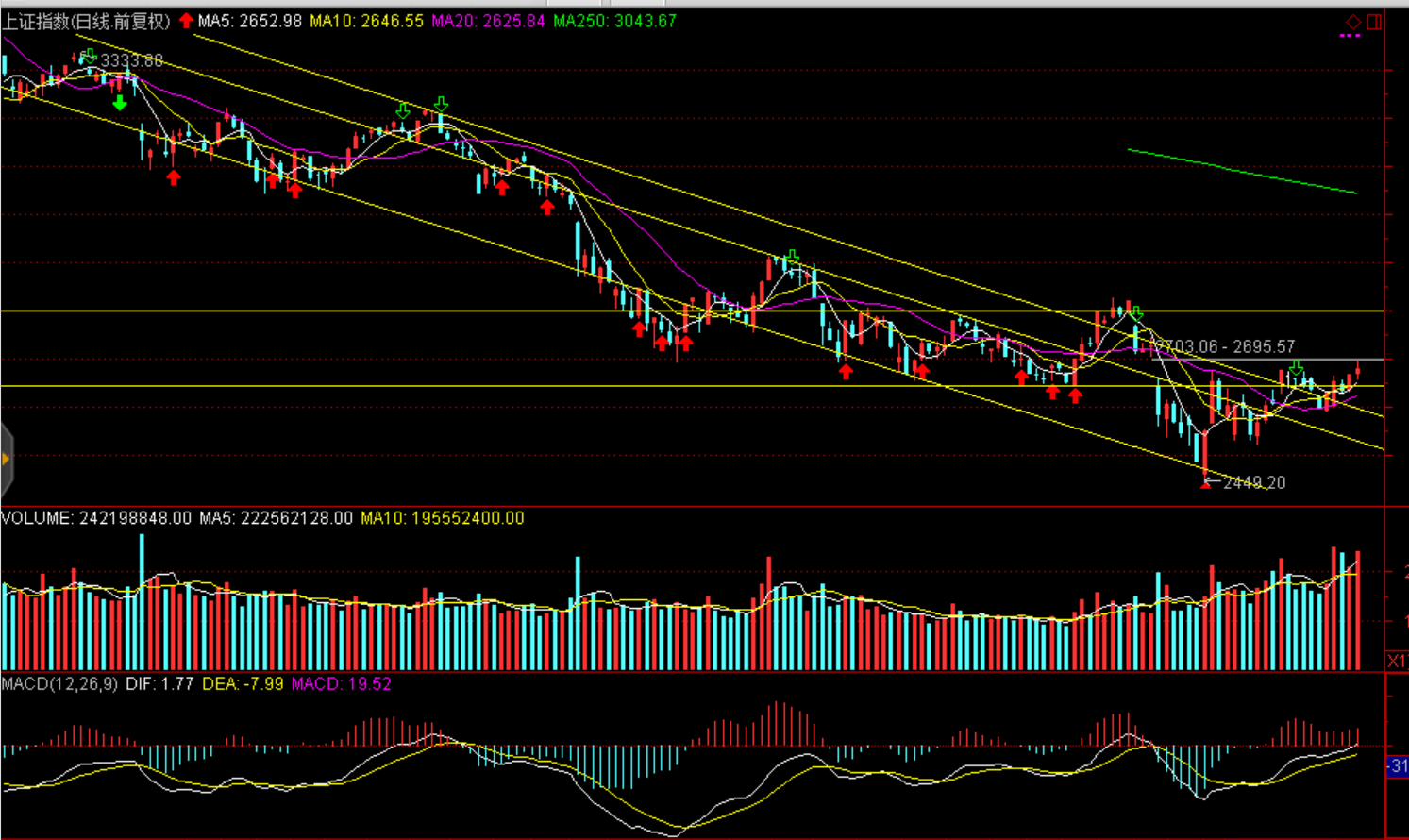 技術面:上周周線量價配合震蕩上揚趨勢,自10月19日見底以來運行21個交易日,短期指數(shù)仍有反復上揚需求,本周20周均線面臨壓力(滬綜指2700點一線、創(chuàng)業(yè)板1430點一線)。