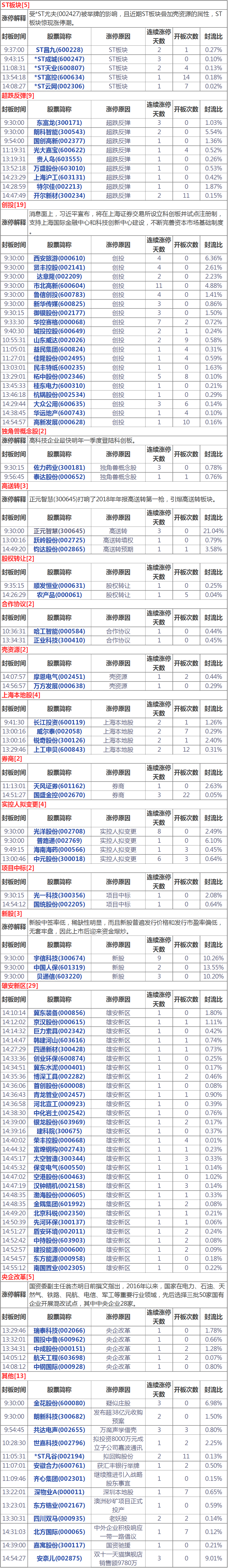 盤面概覽今天漲停家數(shù)較上一交易日有所減少,兩市106家漲停;跌停12家。成交量方面,滬市成交21966億元,深市成交2436億元,兩市總成交額約為4402元,較上一交易日縮量357億元。盤面上,券商、水泥、雄安新區(qū)等板塊漲幅居前,手游、共享單車、半導體等板塊跌幅居前。