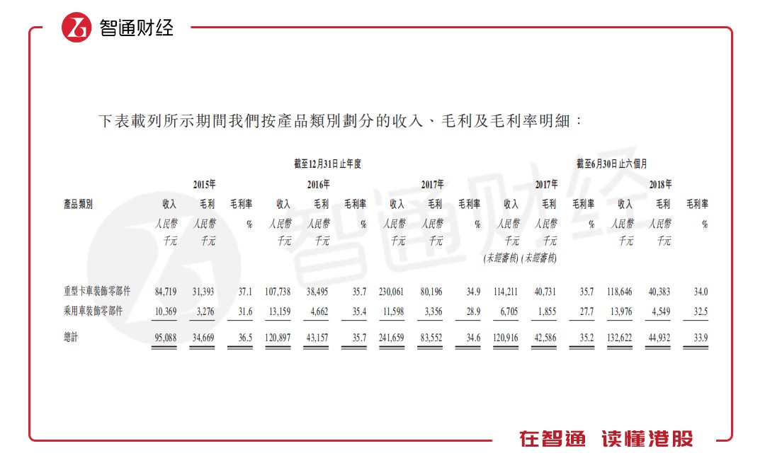 此外,天瑞在招股書中指出,就公司近期財務表現而言,公司的收入從截至2017年10月31日止10月的約1.97億元減至截至2018年10月31日止10個月的約1.92億元,略微減少為2.6%。然而,公司截至2018年10月31日止4個月的毛利率為35.8%,略高于上年同期的34.0%。鑒于收入減少并不明顯,以及與2018年上半年相比,公司截至2018年10月31日止4個月實現穩(wěn)定的毛利率及月平均毛利,因此并無跡象顯示公司的重型卡車裝飾零部件業(yè)務分部會顯著下跌。