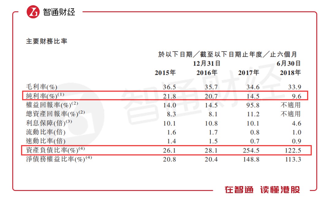 此外,由于公司在2018年上半年發(fā)行了約6460萬元的股份,致使公司總權益增加從而降低了負債率。但截至2018年6月30日公司的資產負債比率依然高達122.5%,其流動比率僅為1倍也顯示公司流動資金并不寬裕。