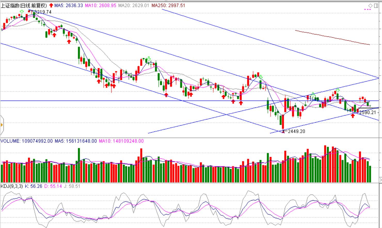 經(jīng)過持續(xù)幾天縮量調(diào)整,短期調(diào)整空間有限,窒息量結(jié)構(gòu)后如配合成交量放大則視為短期企穩(wěn)信號,關(guān)注滬綜指2575點(diǎn)、創(chuàng)業(yè)板1326點(diǎn)一線支撐,預(yù)計(jì)本周企穩(wěn)回升。