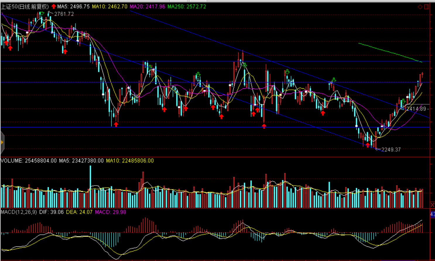 技術面:延續(xù)震蕩上行趨勢,上證50短期2570點一線、滬綜指2700點、1350點一線震蕩或將加劇。