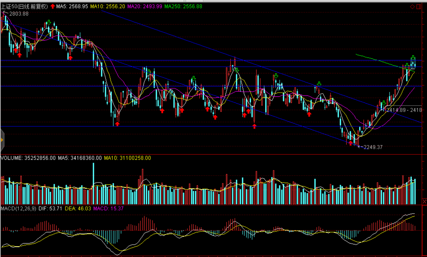 技術(shù)面:周線七連陽(yáng)后放量震蕩,上檔空間有限,滬綜指年線構(gòu)成強(qiáng)壓力,創(chuàng)業(yè)板1500點(diǎn)一線強(qiáng)壓力,預(yù)計(jì)今日兩市股指反彈、滬綜指壓力2806點(diǎn)、創(chuàng)業(yè)板1455點(diǎn)。