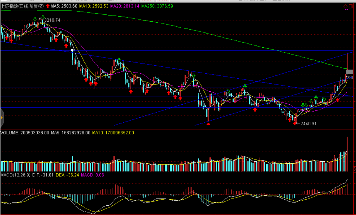 周一兩市大幅放量、強(qiáng)勢上揚(yáng),三大股指均以大陽報(bào)收。上證綜指收漲5.6%報(bào)2961.28點(diǎn),創(chuàng)2015年7月以來最大日漲幅、深證成指漲5.59%報(bào)9134.58點(diǎn)、創(chuàng)業(yè)板指漲5.5%報(bào)1536.37點(diǎn)、上證50漲6.28%。兩市巨量成交1.04萬億元,環(huán)比大幅增加4182億元,刷新2015年11月以來新高;北上資金結(jié)束連續(xù)18日凈流入,凈流出7億元;盤面看券商、保險(xiǎn)、銀行、5G通信、國產(chǎn)軟件、金融科技板及創(chuàng)投塊漲幅居前。整體看市場受到中美貿(mào)易磋商達(dá)成共識、金融供給側(cè)改革內(nèi)外利好因素影響,場外資金加速進(jìn)場,市場進(jìn)入階段性亢奮。