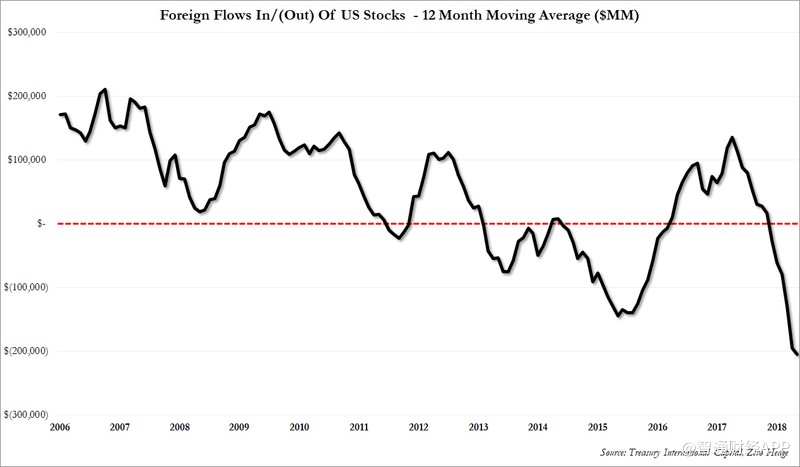 在過去的12個(gè)月里,外國投資者總共拋售了了2050億美元的美國公司股票,這是有記錄以來外國投資者對(duì)美股進(jìn)行的最大規(guī)模的減倉。(林雅蕓)