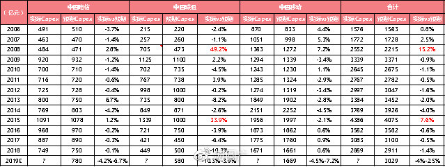 但在調(diào)整之前,我們需要確定當前三大運營商給出的2019年度資本開支計劃具有多大參考性?最終5G投資是否會超出或不及340億元的預期?
