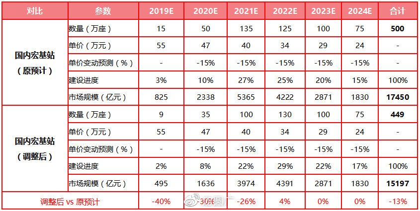 2.下調(diào)2019年5G基站數(shù)預期40%