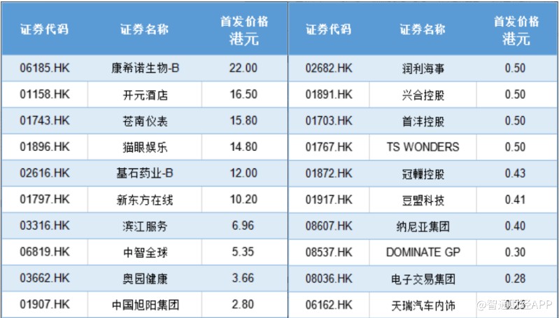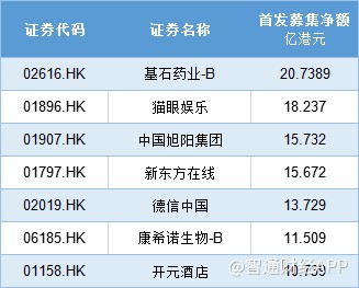 據(jù)智通財經(jīng)APP統(tǒng)計,36只新股中,僅基石藥業(yè)-B、貓眼娛樂、中國旭陽集團、新東方在線、德信中國、康希諾生物-B、開元酒店等7只新股募資凈額超過10億港元,其中基石藥業(yè)-B募資總額最高,達20.74港元。