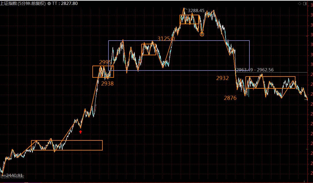 下圖為上證指數(shù)五分鐘級(jí)別走勢(shì)結(jié)構(gòu)。短線看,上證指數(shù)這段從2934點(diǎn)開(kāi)始的回落線段,已進(jìn)入空頭陷阱區(qū)域,本周初將完成下方五分鐘中樞的第一類(lèi)買(mǎi)點(diǎn)構(gòu)造,突破2940點(diǎn)之后,上漲趨勢(shì)將開(kāi)啟,目標(biāo)3050-3100之間。