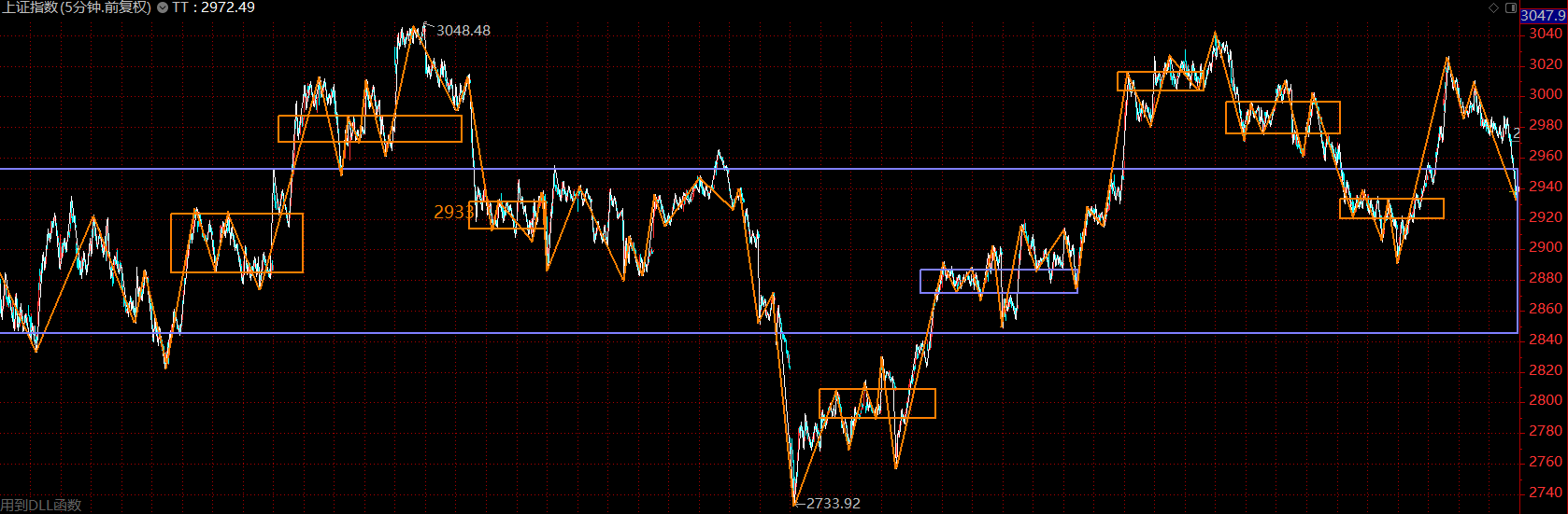 結(jié)構(gòu)上看,上證指數(shù)已跌回了大中樞內(nèi)部,市場(chǎng)情況不樂(lè)觀,大概率已經(jīng)確認(rèn)上周一的高點(diǎn)為第二類賣點(diǎn)。那么這里應(yīng)該轉(zhuǎn)向防守為主,反彈中應(yīng)適度降低倉(cāng)位,觀望等待。關(guān)注壓力位2970點(diǎn)附近,可據(jù)此高拋,靜待市場(chǎng)回落后再行布局。