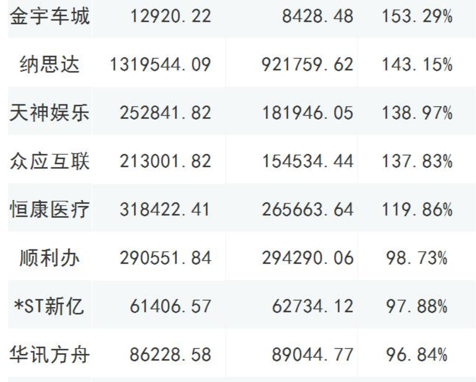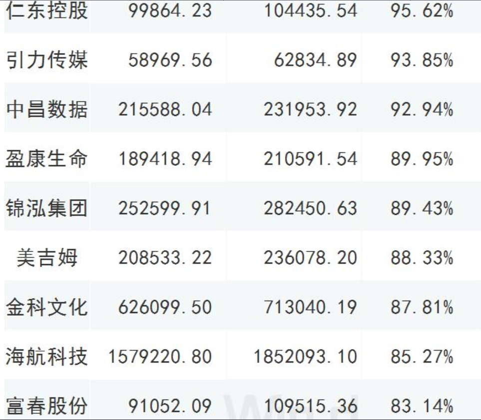 截至2019年三季報商譽(yù)占凈資產(chǎn)比重大于70%的公司,共有46家;12家的比值超過了百分百,以下列舉部分超過80%的公司;謹(jǐn)慎年終商譽(yù)減值風(fēng)險爆發(fā);