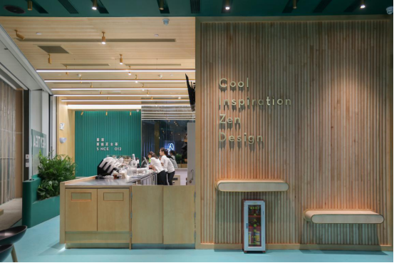 說到喜茶,年輕、新鮮、現(xiàn)代、酷、時尚這類詞語會被經(jīng)常提及聯(lián)系到,而簡單干凈的設(shè)計(jì)又是喜茶留給人們的主要印象,新店在空間設(shè)計(jì)中保留這種沖突又包容的特質(zhì),以平和溫暖的淺色木材為主基調(diào),結(jié)合綠色點(diǎn)綴,給人以平靜寧和的空間氛圍。