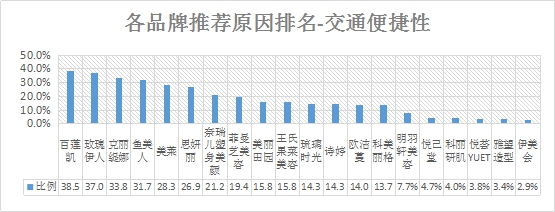 排名第一的是百蓮凱,交通便捷性推薦率為38.5%;其次是玫瑰伊人,推薦率為37.0%;第三名是克麗緹娜,推薦率為33.8%。