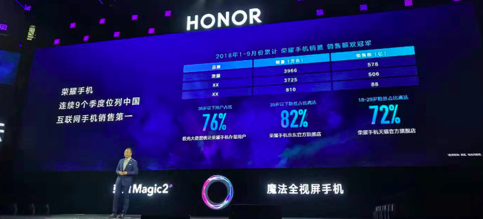 2018年,在全球智能手機(jī)市場(chǎng)增長(zhǎng)遇冷的大勢(shì)下,榮耀繼續(xù)乘風(fēng)破浪的亮眼表現(xiàn)。在國(guó)內(nèi)市場(chǎng),連續(xù)9個(gè)季度位列中國(guó)互聯(lián)網(wǎng)手機(jī)銷(xiāo)售第一,進(jìn)一步夯實(shí)互聯(lián)網(wǎng)手機(jī)第一品牌的地位。據(jù)賽諾數(shù)據(jù)顯示,2018年1-9月,榮耀手機(jī)以3966萬(wàn)臺(tái)的銷(xiāo)量、578億元的銷(xiāo)售額,雙雙進(jìn)入中國(guó)手機(jī)市場(chǎng)的前五,這也是唯一入圍TOP5的互聯(lián)網(wǎng)手機(jī)品牌。同時(shí),榮耀在全球74個(gè)國(guó)家市場(chǎng)以榮耀模式縱深布局、深度耕耘,強(qiáng)勢(shì)進(jìn)入快速增長(zhǎng)通道。