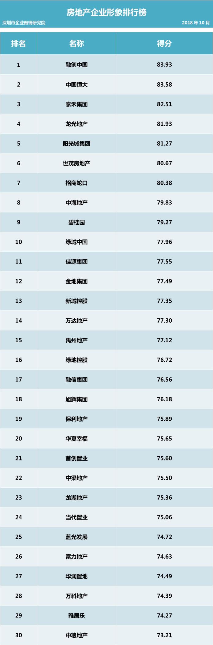 二、房地產(chǎn)行業(yè)企業(yè)公眾形象排行榜: