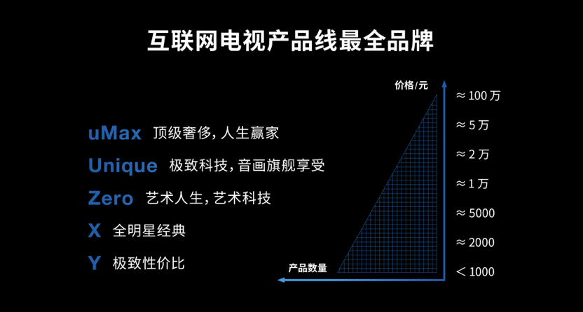 從頂級的uMax巨幕系列,到Unique系列追求黑科技,追求音畫旗艦級的享受,Zero系列的科技藝術(shù)質(zhì)感,經(jīng)典的X系列,以及即將推出的極致性價(jià)比的Y年輕系列,樂融 Letv超級電視的產(chǎn)品線涵蓋從40吋到120吋,價(jià)位段從千元起到幾十萬元,已經(jīng)成為互聯(lián)網(wǎng)電視產(chǎn)品布局最全面的品牌。