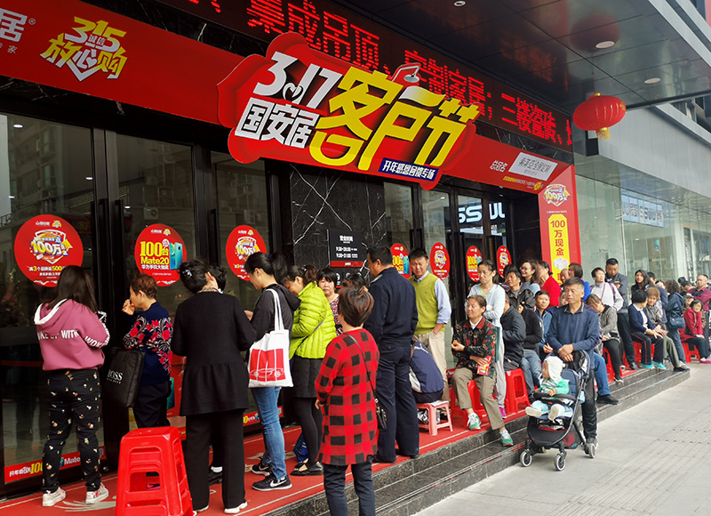3月17號活動當天,為了讓消費者切實享受到誠信保障的權(quán)益,國安居除了推出家居“真品質(zhì)宣言“的行動,勁爆讓利消費者。吸引消費者紛紛下單的不僅僅是本次活動重磅出擊狠送的100臺華為Mate20手機,還有特設的聯(lián)購滿額返100萬現(xiàn)金,消費者買的單數(shù)越多返的現(xiàn)金就越多,此項活動掀起了全天的下單高潮。