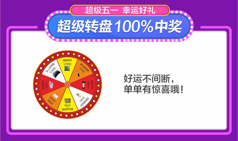 2、超級(jí)大轉(zhuǎn)盤,100%中獎(jiǎng):活動(dòng)期間,顧客憑活動(dòng)期間的訂單(單筆實(shí)付3000以上)即可參與超級(jí)大轉(zhuǎn)盤活動(dòng),送完即止!