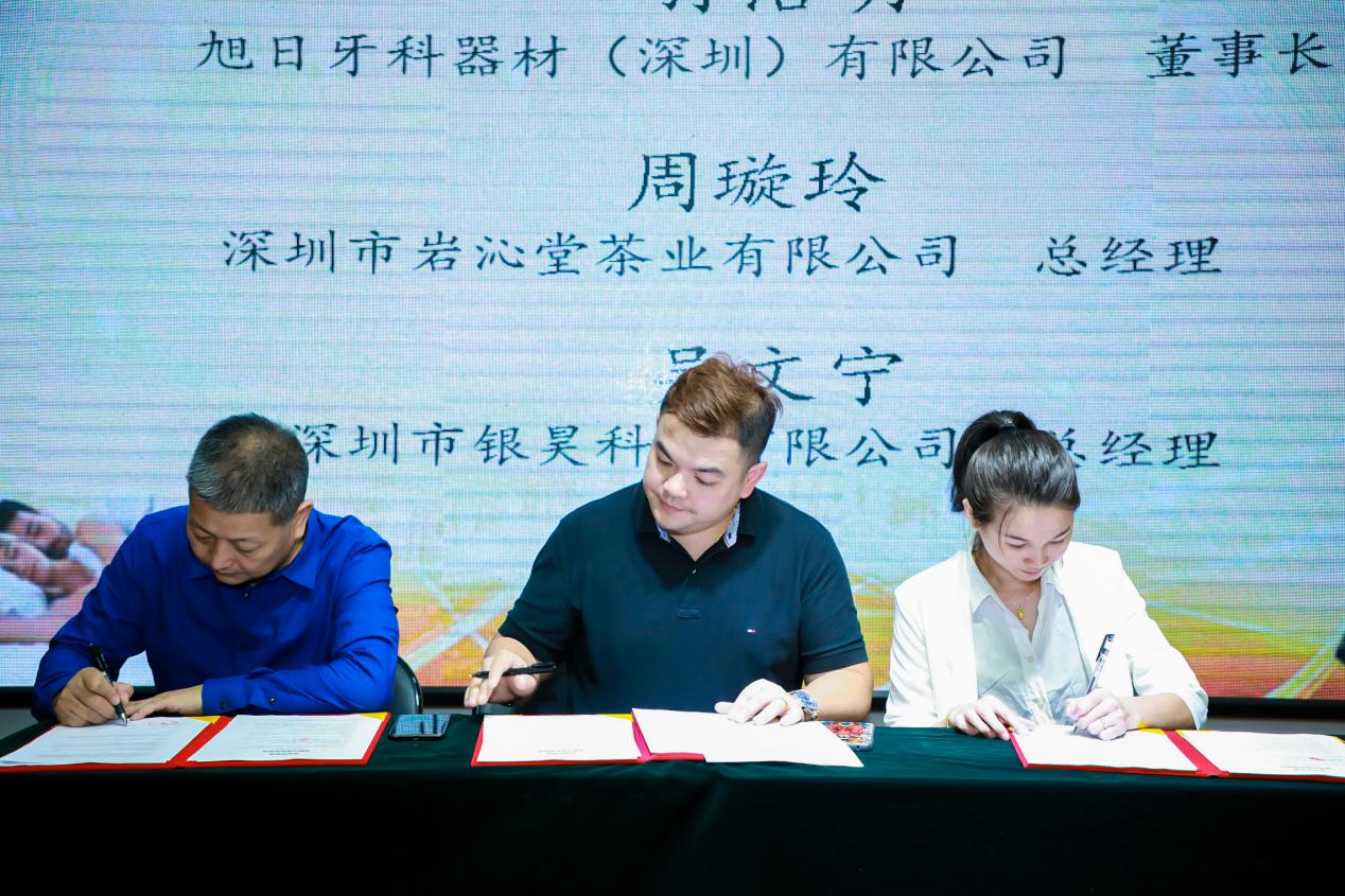 活動現場,深圳市銀昊科技有限公司總經理吳文寧、旭日牙科器材(深圳)有限公司董事長孫浩明、深圳市巖沁堂茶業(yè)有限公司總經理周璇玲、深圳書畫藝術學院財務總監(jiān)孫玲、中國美術教育研究會藝術顧問張成珍教授等與中科睿雅沉香簽訂合作伙伴協(xié)議,共同開拓沉香精油市場。