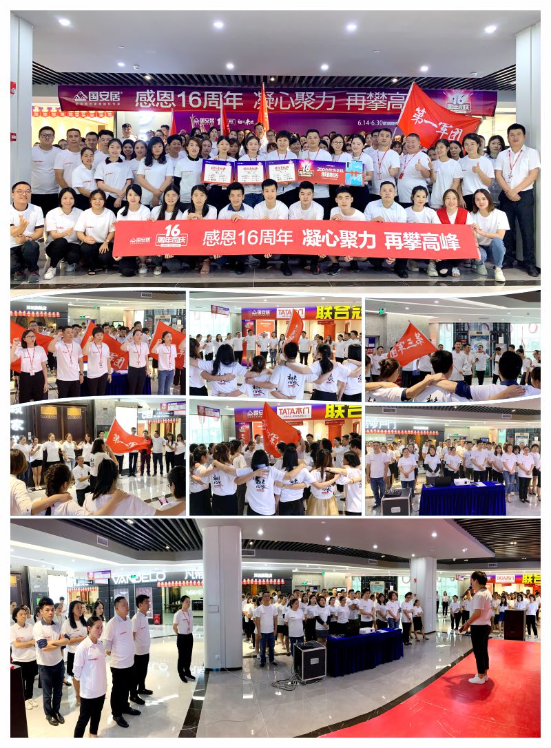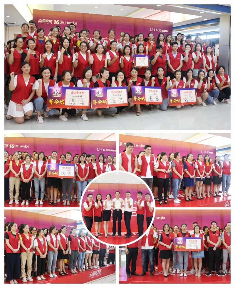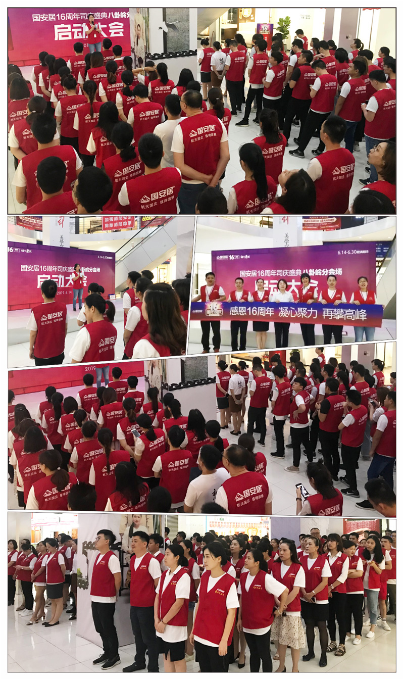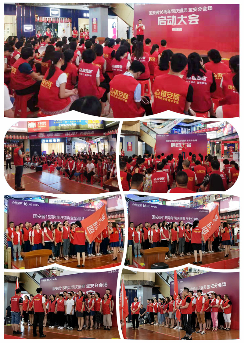 6月13日-14日,國(guó)安居“16周年司慶”啟動(dòng)大會(huì)在國(guó)安居深惠門店火熱舉行,800家品牌商家的銷售精英、員工代表、熱心市民等近萬余人共同見證了這一意義非凡的時(shí)刻。參與者身著統(tǒng)一服裝,早早就聚集在商場(chǎng)中庭,所有人都把笑容掛在臉上,展現(xiàn)出自己最陽光、最開心、最具活力的一面。