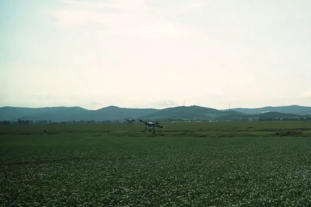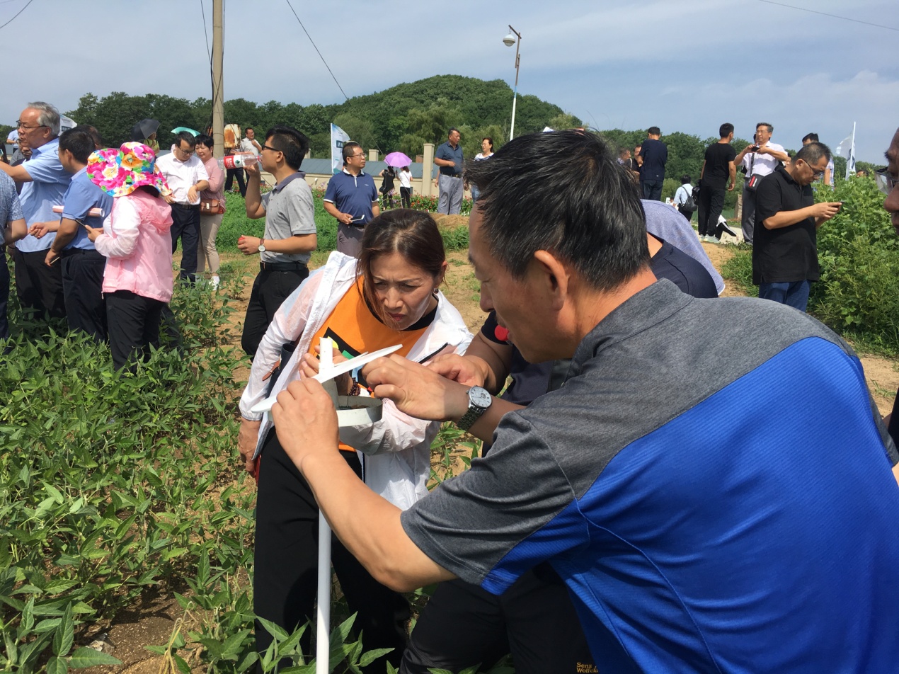 開班儀式前,參會領(lǐng)導(dǎo)、專家及各省市參會代表現(xiàn)場觀摩位于敦化市鴻發(fā)現(xiàn)代生態(tài)農(nóng)場的全國生物食誘劑防控大豆食心蟲技術(shù)試驗(yàn)示范區(qū),在示范區(qū)現(xiàn)場觀摩無人機(jī)噴灑生物食誘劑。