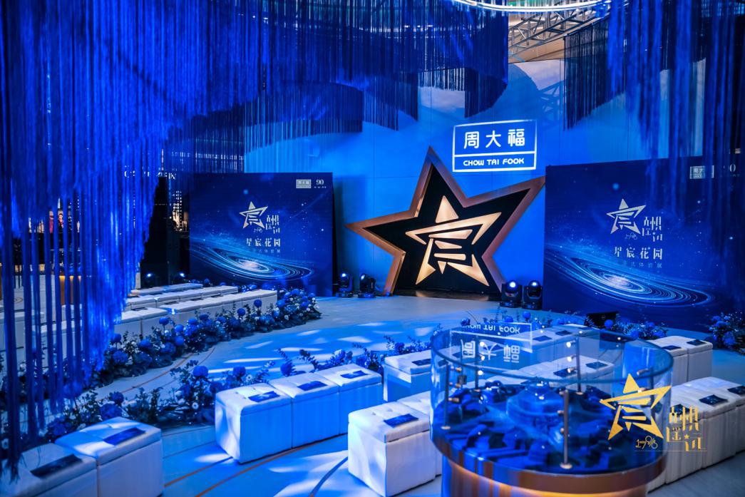 隨著現(xiàn)代都市生活節(jié)奏的加快,自由、輕快的自然主義,成為了人們心中放松與回歸的一片凈土。此次周大福以“宸·無懼遙遠(yuǎn)”為主題,采用沉浸式多媒體方式,將發(fā)布會(huì)變成了一場(chǎng)聯(lián)結(jié)夢(mèng)幻與現(xiàn)實(shí)的藝術(shù)展。在現(xiàn)場(chǎng)營(yíng)造的“星宸花園”中,體驗(yàn)區(qū)、展品陳列區(qū)、觀眾區(qū),每個(gè)區(qū)域都銜接自然,勾勒出如星河般的流暢動(dòng)線。觀眾游走其間,猶如在星空漫步一般。