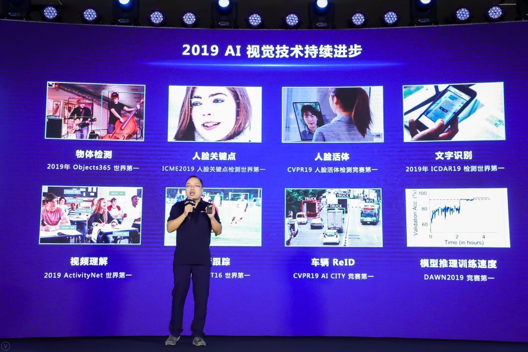 隨后,丁二銳基于更好效果的算法創(chuàng)新和更高性能的模型壓縮兩個(gè)方面,詳細(xì)介紹了百度人臉識別基礎(chǔ)技術(shù)的領(lǐng)先性,并從交互升級和軟硬結(jié)合兩方面講述了人臉識別的應(yīng)用趨勢。據(jù)丁二銳介紹,2019年百度大腦基礎(chǔ)AI視覺技術(shù)取得了很好的成績,在CVPR和ICCV等視覺頂會及比賽上,百度視覺技術(shù)團(tuán)隊(duì)取得了數(shù)十項(xiàng)冠軍,其中在人臉方向,關(guān)鍵點(diǎn)、活體、檢測,識別就有四項(xiàng)冠軍。