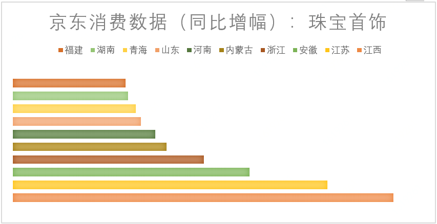 而在珠寶首飾的需求上,東南省份再次成為消費(fèi)主力軍,其中江西省的同比增幅達(dá)到300%以上,看來在江西的小伙伴今年國慶期間可沒少參加婚禮。