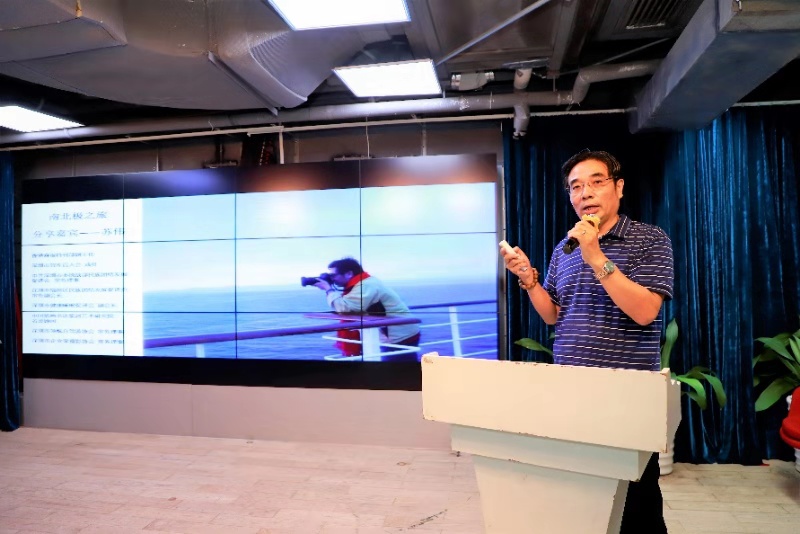 蘇偉老師在現(xiàn)場介紹:10月15日對深圳來說是一個(gè)極其不平凡的日子,上午在深圳舉辦了首屆“中國海洋第一展”暨“2019中國海洋經(jīng)濟(jì)博覽會”在深圳會展中心隆重開幕,下午由中國自主建造的首艘極地科學(xué)考察破冰船“雪龍2”號在蛇口港出發(fā)首航挺進(jìn)南極,特別機(jī)緣巧合的是我今晚分享的內(nèi)容就是南北極旅游。為什么用“畫”極地,而不是“話”極地,這是因?yàn)?,地球有三極,除了南北極外,還有“珠峰”就是第三極。而我們?nèi)齻€(gè)六十年的老男人,在蘇偉老師的鼓動下,三個(gè)人用不到三年的時(shí)間,踏訪了這“三極”。如果要展開講,恐怕三天三夜也講不完。所以,“畫”極地,就是用照片,講一下照片背后的故事。