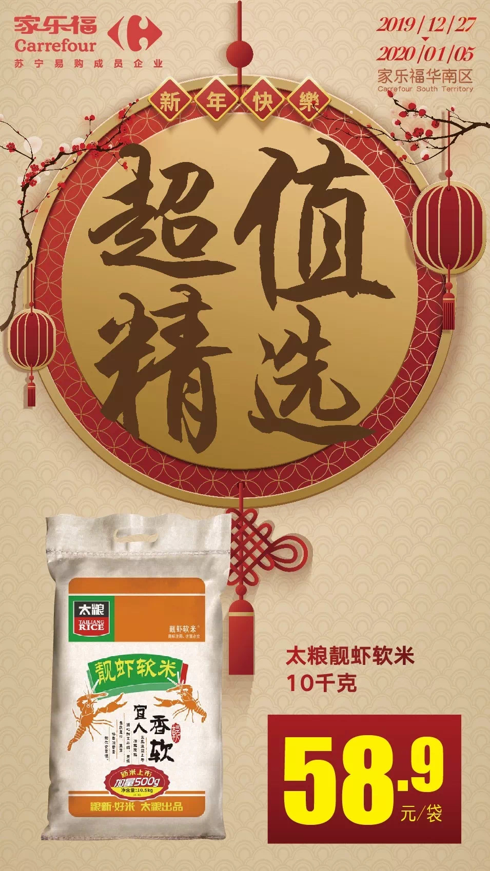 深圳新聞網(wǎng)2019年12月27日訊 俗話說“民以食為天”。一碗好米飯,能頂半邊天。要過年了,家里總得備點好米呀!12月27日至1月5日,家樂福華南區(qū)特推太糧靚蝦軟米,驚爆價僅需58.9元/袋。吃貨們,囤起!