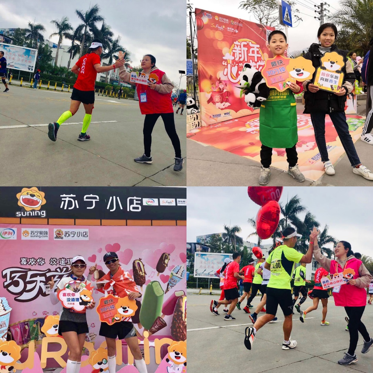 此次馬拉松全程約42公里。在賽道上,從第五公里(包括5公里)開始,每2.5公里提供一個飲水站;每5公里提供一個飲料站;還有能量供應站,以提供香蕉,少女水果,葡萄干,小面包,能量膠,黃瓜,干豆和鹽丸。豐富的補給使跑步者更加放心,并更有動力奔跑!還有各式各樣的拉拉隊加油站,其中35公里處,是由蘇寧小店聯(lián)合伊利、心相印設置的“萌獅加油站”,他們?yōu)榕苓^的參賽者加油吶喊,擊掌助力,還有跑者在此處拍照打卡,為此次新年馬拉松留下紀念。