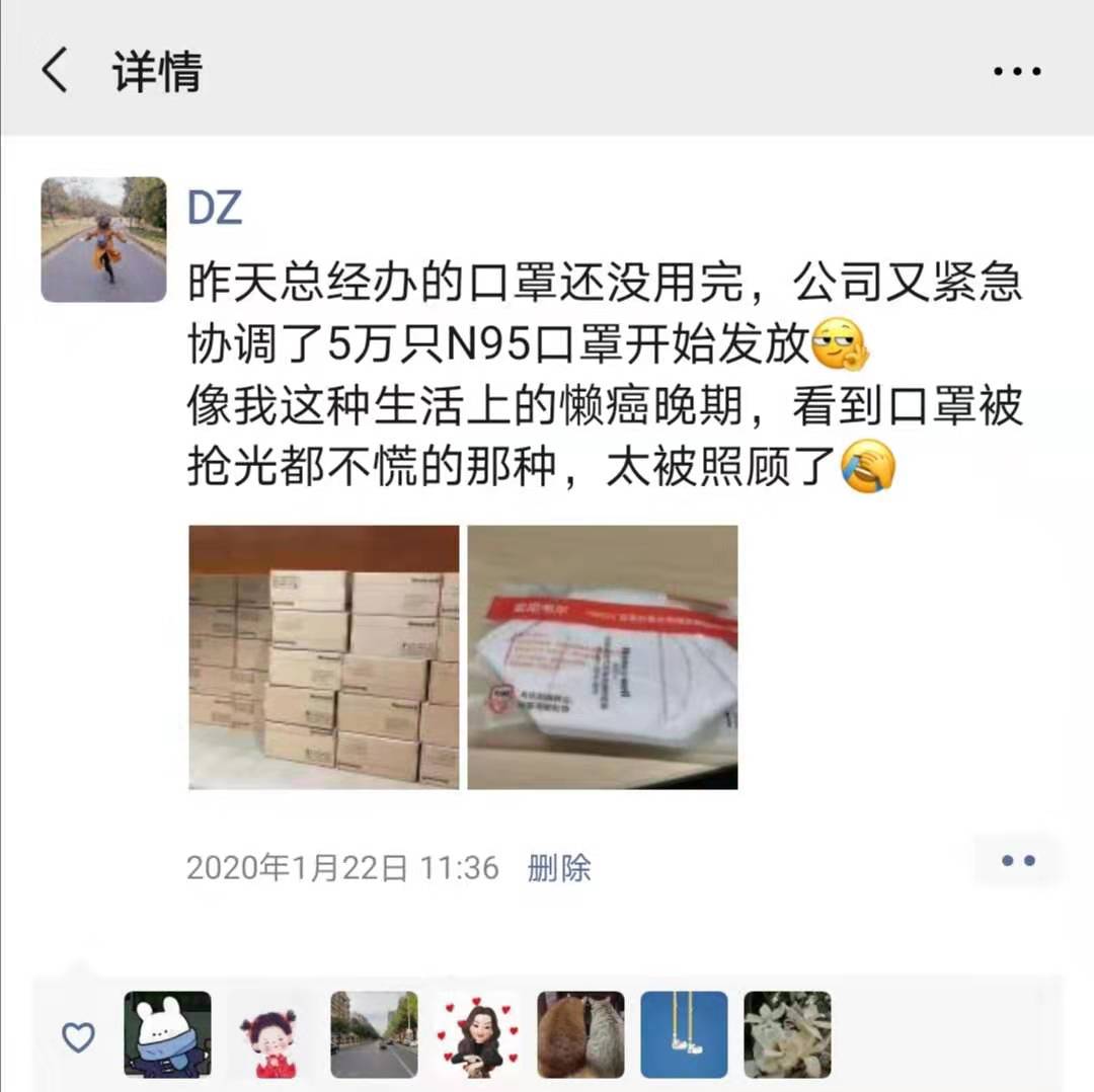春節(jié)放假前夕,疫情形勢陡然嚴(yán)峻。在蘇寧南京總部工作的小丁清楚地記得,1月2 2 日那天,她在上班的路上,看到戴口罩的人多了起來,還和小伙伴念叨著也要趕緊買些。結(jié)果,當(dāng)天上午,部門就給每人發(fā)了一個(gè)全新的N9 5 口罩,讓她倍感驚喜和暖心。原來,蘇寧總部緊急調(diào)集了5萬個(gè)口罩發(fā)到員工手中,各大區(qū)也紛紛緊急調(diào)貨給員工發(fā)放。自稱“懶癌晚期”、平時(shí)連朋友圈都很少發(fā)的她,忍不住發(fā)圈為公司點(diǎn)贊。