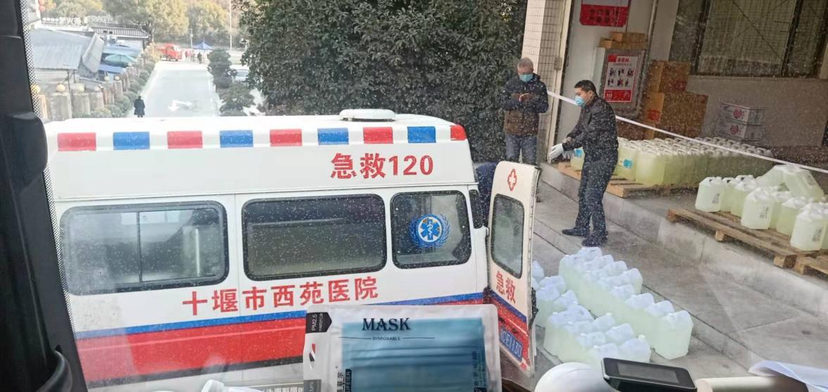 十堰市西苑醫(yī)院搬運物資現(xiàn)場