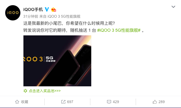 不僅如此,iQOO官博還在近期發(fā)布了一條“ UFS3.1用起來真快,二月見哦!”的微博,進(jìn)一步肯定了iQOO3的即將到來,并將搭載UFS3.1頂級(jí)閃存芯片的事實(shí)。這是繼iQOO Neo855版采用UFS3.0閃存領(lǐng)先業(yè)界后的再次升級(jí),進(jìn)一步提升和鞏固了iQOO3的5G性能旗艦定位。