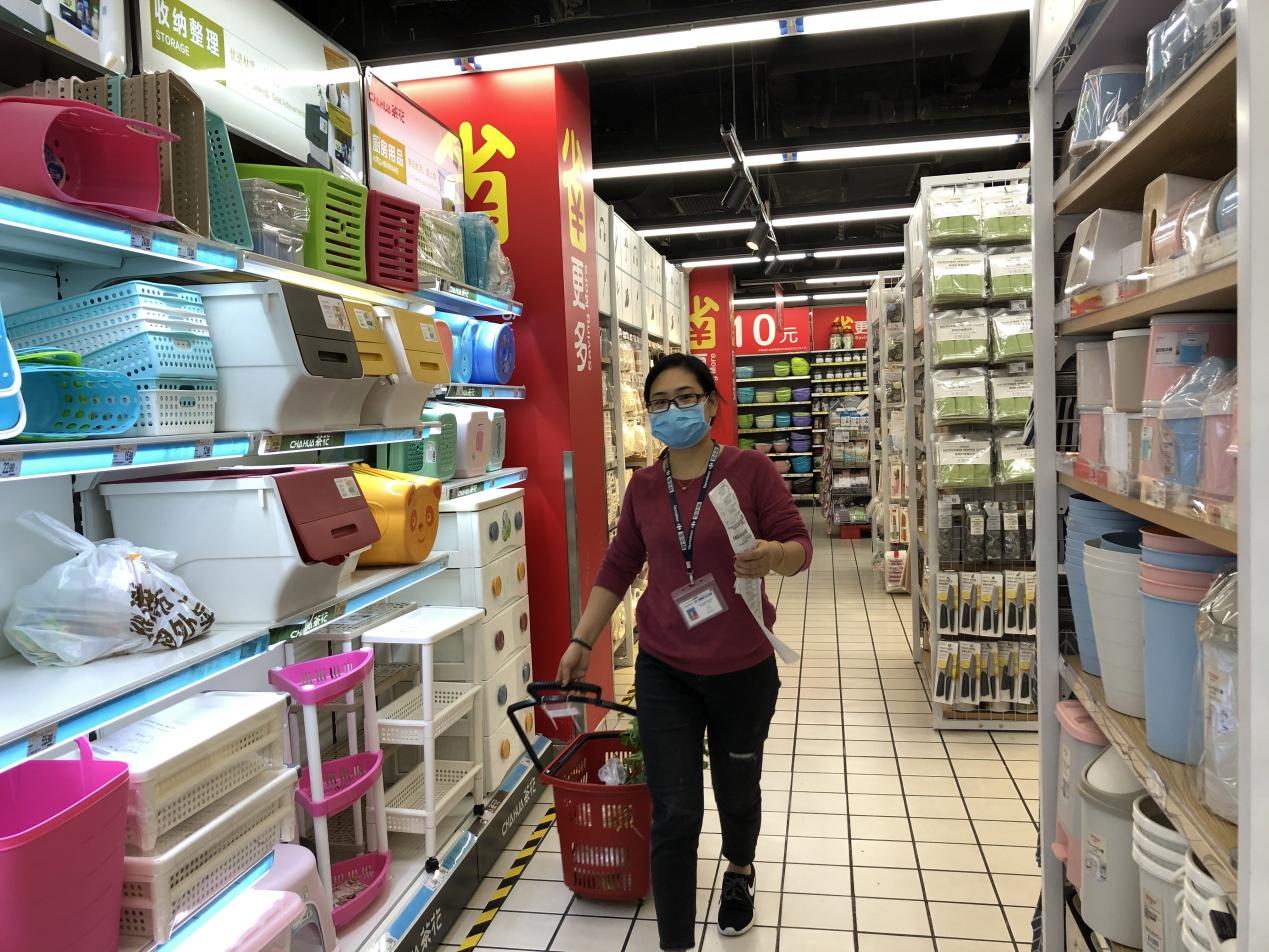“最近十幾天,我們每天都要工作12個(gè)小時(shí)以上?!蓖趿⑷A的聲音有點(diǎn)沙啞了。疫情發(fā)生后,超市的線上訂單猛增,他們團(tuán)隊(duì)需要從家樂福微信小程序、蘇寧小店微信小程序、蘇寧易購-家樂福1小時(shí)達(dá)、餓了么和美團(tuán)外賣這五個(gè)平臺(tái),接收在門店3公里范圍內(nèi)的市民下的所有“配送到家”服務(wù)訂單。為了實(shí)現(xiàn)“1小時(shí)速達(dá)”的承諾,避免訂單超時(shí),他們需要不停地揀貨、打包并和其他部門同事及顧客電話溝通。從初二到現(xiàn)在,在她的印象里,每天就是不斷地揀貨、打包、打電話,幾乎從早上7時(shí)一直忙活到晚上9點(diǎn)平臺(tái)截單的時(shí)候。