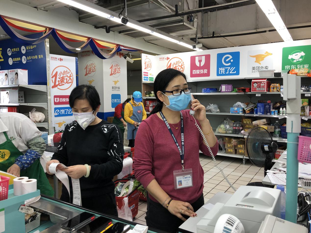 “最近十幾天,我們每天都要工作12個小時以上?!闭f這話的正是家樂福深圳梅林店的電商主管王立華,由她帶領(lǐng)的5人小團(tuán)隊肩負(fù)起該店“配送到家”服務(wù)的揀貨、核單、打包、確認(rèn)、與騎手交貨等工作。疫情當(dāng)前為避開人群,更多的市民選擇在線上外賣平臺訂購超市的商品配送到家,因此超市的線上訂單猛增。為了實現(xiàn)“1小時速達(dá)”的承諾,避免訂單超時,王立華要求團(tuán)隊從出單到打包好不能超過20分鐘,每天過手的各類商品有上千件?!凹覙犯C妨值甑馁u場面積大概是5000平方米,每天上下樓跑多少趟具體倒是沒有統(tǒng)計過,但像現(xiàn)在特殊時期,我們一天在網(wǎng)上接到的‘配送到家’服務(wù)訂單基本都要超過800單,有時候會到1000單。”王立華回答記者時,額頭上一直有細(xì)密的汗珠,聲音也有點沙啞了。