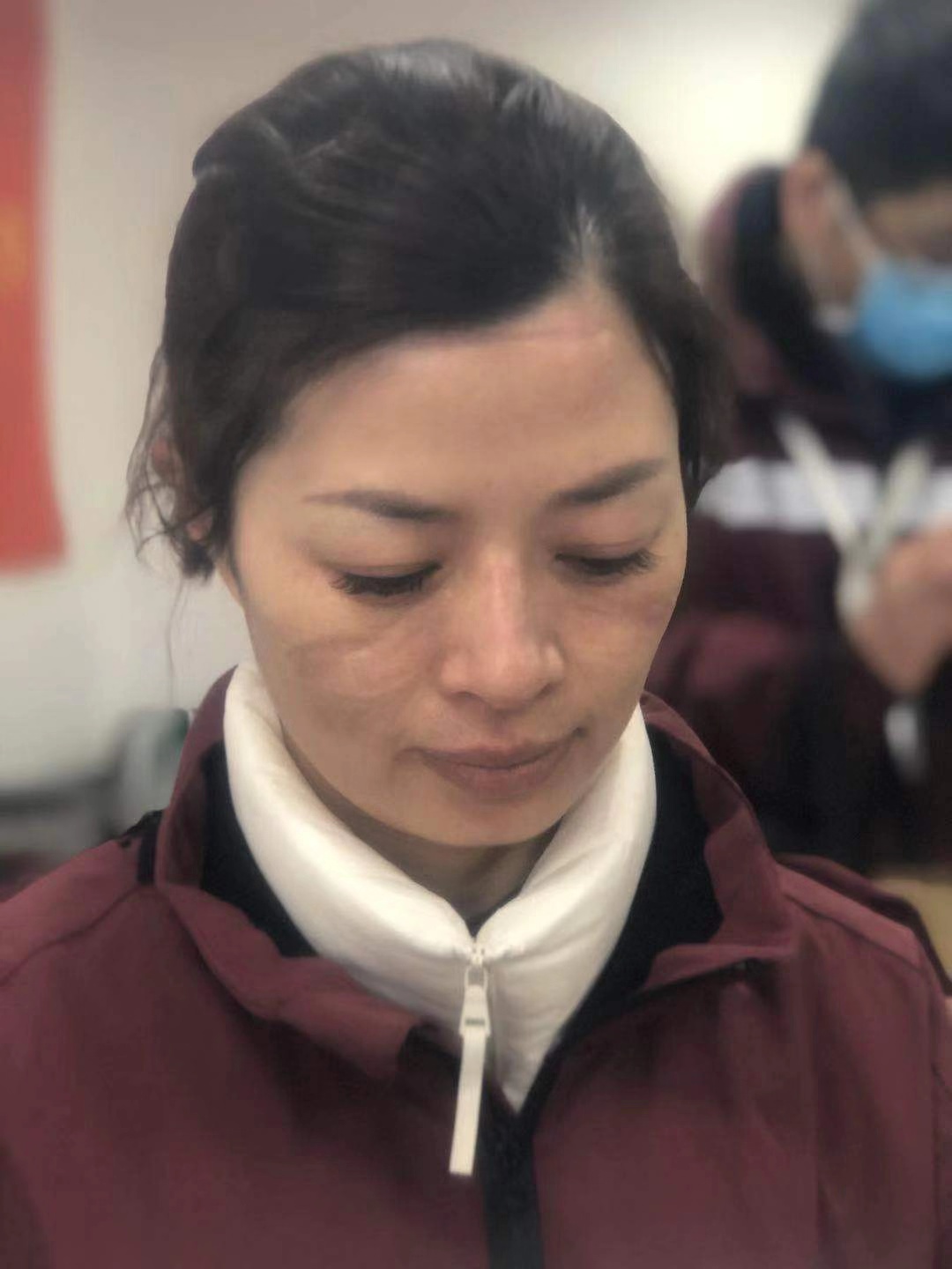 袁衛(wèi)文說,妻子在前線工作強(qiáng)度很大,幾班倒,有晚上10點(diǎn)的班,也有凌晨3點(diǎn)的班。一次,妻子下班后給他發(fā)來摘掉口罩的照片,臉上的一道道勒痕,讓袁衛(wèi)文看得十分心疼。他只能默默祈禱,疫情快點(diǎn)過去,妻子平安歸來。