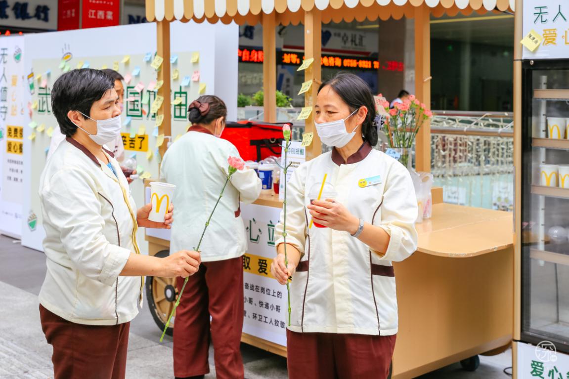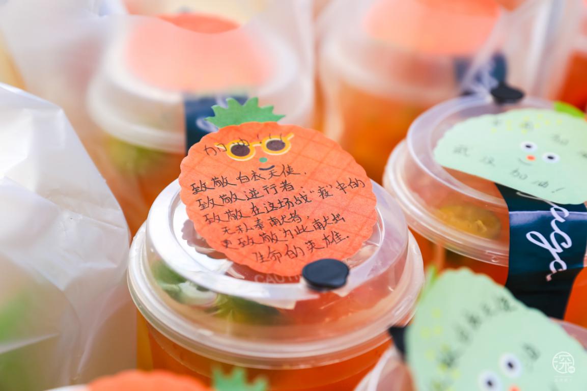 當然除了熱心市民,來獻愛心的還有卓悅INTOWN購物中心內(nèi)的商戶:瑞幸咖啡、麥當勞、太平洋咖啡、CoCo都可、湊湊、gaga鮮語、HUN混果汁、享甜、Bangs Burger燕遇、辣可可現(xiàn)炒黃牛肉、旬野菜在知道這次活動后,紛紛主動提供食物或飲品,給疫情期間始終奮斗在一線的服務人員們,他們值得我們好好愛著。