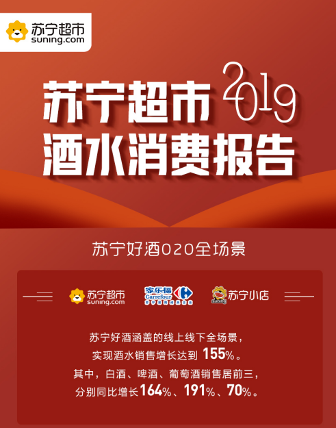 深圳新聞網(wǎng)2020年3月20日訊 昨日,蘇寧超市發(fā)布2019年度酒水消費(fèi)報(bào)告。數(shù)據(jù)顯示,2019年,蘇寧好酒全渠道銷售同比增長(zhǎng)155%。其中,白酒、啤酒、葡萄酒銷售分別同比增長(zhǎng)164%、191%、70%??v觀整年,家樂福、飛天茅臺(tái)酒、全場(chǎng)景等成2019年蘇寧酒水關(guān)鍵詞,這也進(jìn)一步凸顯了蘇寧超市酒水生態(tài)圈建設(shè)的卓越成效。