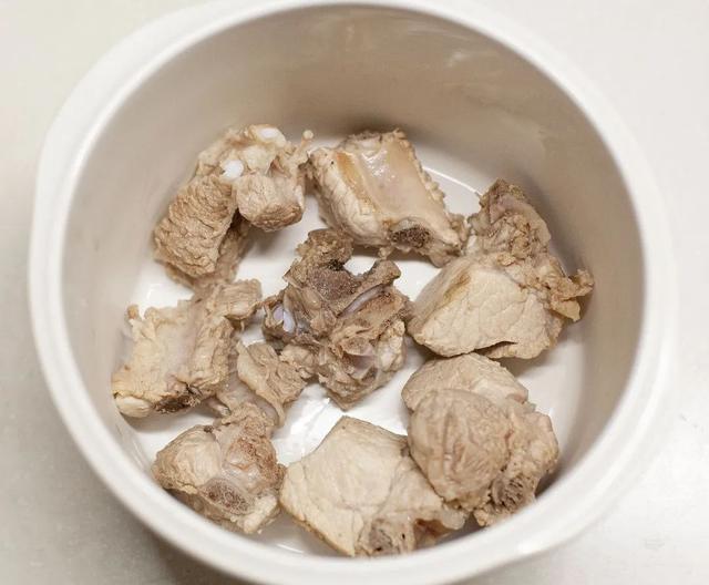 1.火腿、春筍切塊;排骨、火腿冷水下鍋,加兩片姜焯水,洗凈備用。