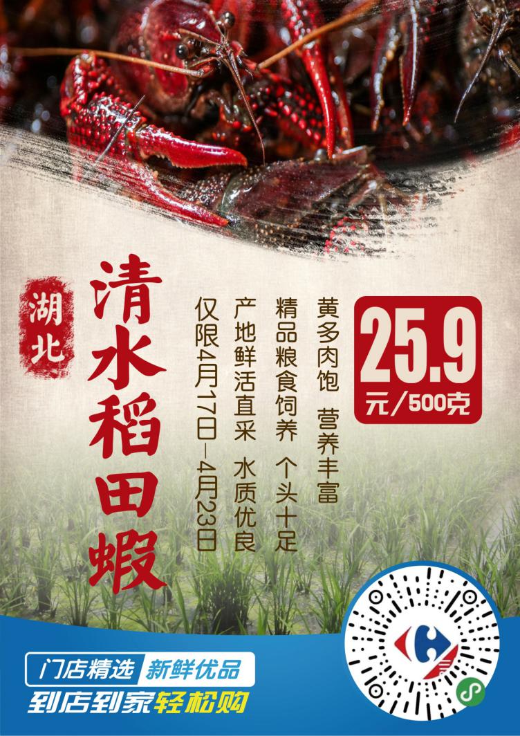 15號開始捕撈的這批湖北“清水稻田蝦”將于16號完成分揀裝車,發(fā)往家樂福全國各地大倉,17號,家樂福位于北京,上海、哈爾濱,長沙,成都,昆明,廣州,深圳等地的155家門店鮮活開售,恰逢家樂福418購物節(jié),嘗鮮價低到25.9元/500克(僅限4月17日至23日)。同時,顧客還可以通過家樂福小程序、蘇寧易購app、蘇寧小店App、及美團、餓了么下單,享受1小時送到家的極致“鮮“體驗。