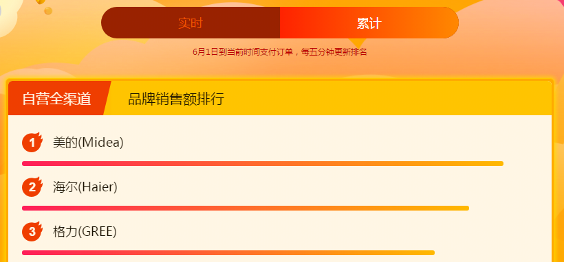 與此同時,頭部品牌在蘇寧全渠道銷售暴增。截至當日16時,美的、海爾、格力占據品牌銷售額前三席位。其中,美的以品牌銷量、品牌銷售額、品牌加購人數三冠的成績領跑榜單,同時橫跨空調、冰洗、品質廚電等多品類品牌TOP榜,成為最大贏家。