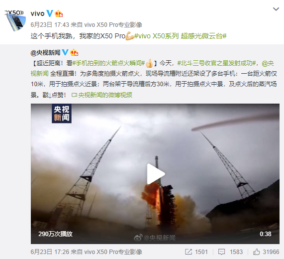 見圳客戶端 ·深圳新聞網(wǎng)2020年6月28日訊 北斗系統(tǒng)第五十五顆導(dǎo)航衛(wèi)星暨北斗三號最后一顆全球組網(wǎng)衛(wèi)星,6月23日9時43分成功發(fā)射。為了多角度拍攝火箭點(diǎn)火,央視新聞在導(dǎo)流槽附近架設(shè)多臺vivo X50 Pro手機(jī),一臺位于導(dǎo)流槽旁邊,距離火箭10米的位置,用于拍攝點(diǎn)火近景;兩臺架設(shè)在導(dǎo)流槽后方30米的距離,用于拍攝點(diǎn)火中景,以及點(diǎn)火后的蒸汽場景。