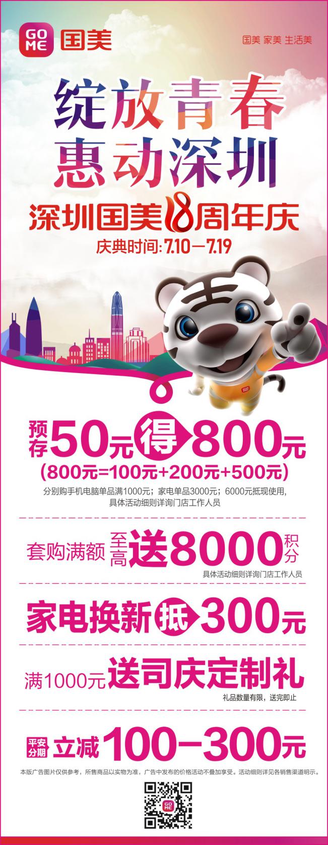 時(shí)間是最好的見證者,萬分榮幸我們和辛勤的深圳建設(shè)者一起見證了這座偉大城市的發(fā)展與變遷,深圳無疑是充滿創(chuàng)造力和奇跡的城市,時(shí)間就是金錢,效率就是生命是這座城市的座右銘。為感謝粉絲們一直以來對(duì)國美的支持與厚愛,值此18周年大慶之際,深圳國美于7月10日-19日舉辦了一場(chǎng)“綻放青春,惠動(dòng)鵬城”18周年慶活動(dòng)!