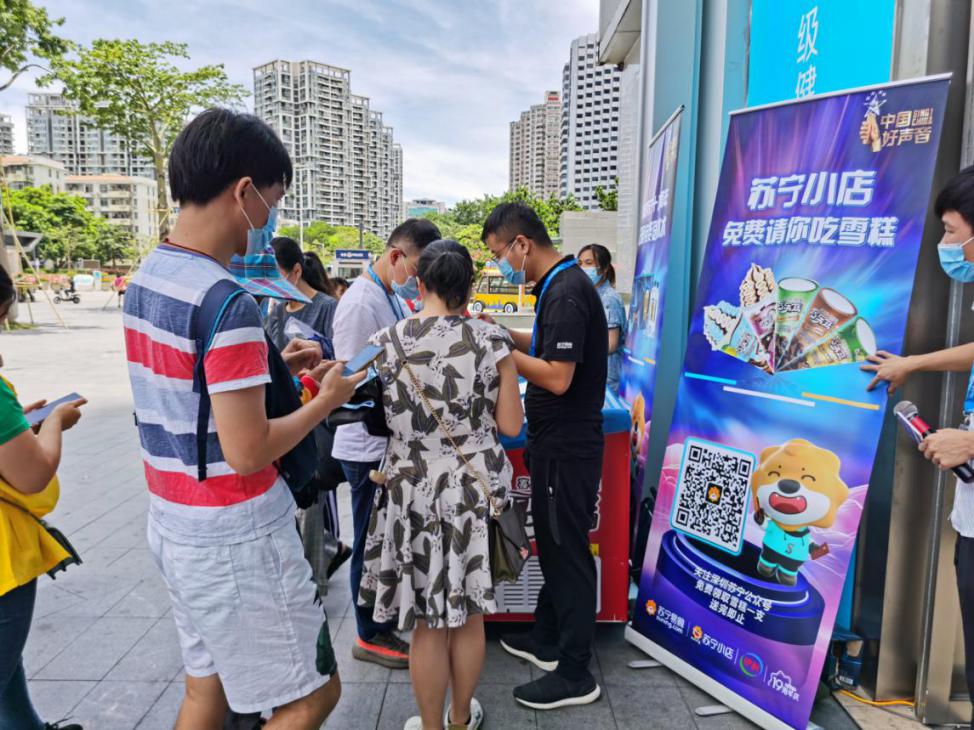 無獨有偶,群星廣場蘇寧易購門店外的活動賽場亦同步在火熱舉行中,7月18日-7月19日,蘇寧聯(lián)合美的一同舉辦中國好聲音復(fù)賽,活動現(xiàn)場熱鬧非凡,做好防疫檢查工作的同時,全力維護現(xiàn)場治安秩序穩(wěn)定,活動現(xiàn)場蘇寧小店展開夏日送清涼活動,免費送冰水雪糕,用“清涼一夏”的愛心之舉,給市民帶去一份夏日關(guān)懷。同時現(xiàn)場參賽選手三十余位埋藏著夢想的音樂人在舞臺上縱情燃燒,深情獻(xiàn)唱,將活動推向了高潮。一同成就粵港蘇寧十九周年最炫的夜晚。